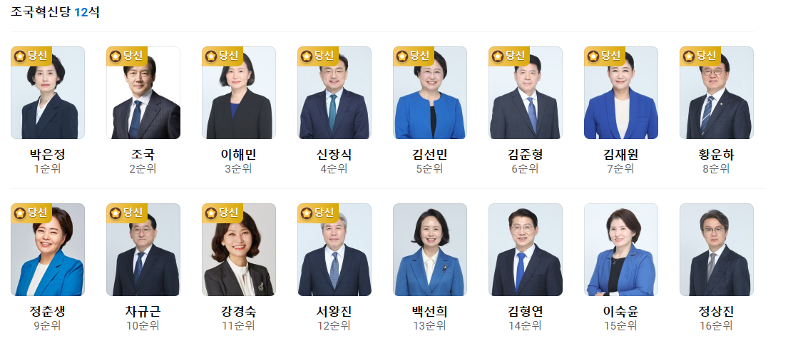 - 조국혁신당 12석 (조국 비례대표 2순위)